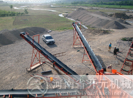膠帶輸送機也可以叫做皮帶輸送機、帶式輸送機,我公司生產的膠帶輸送機廣泛應用于選礦行業(yè)物料的輸送,對于選礦工藝生產線來說,一般膠帶輸送機都要視客戶現(xiàn)場情況訂做。膠帶輸送機技術結構簡單,易于維修,常常被用來做各種選廠的輸送設備。